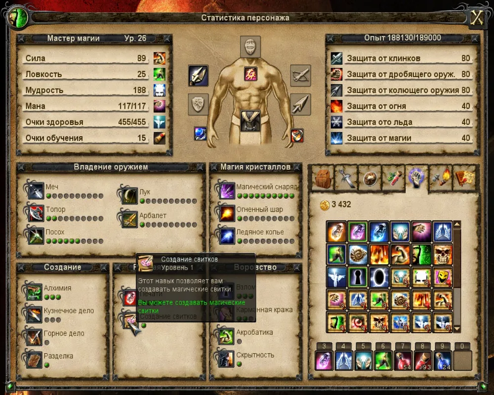 После обучения Вы сами сможете создавать свитки за "Письменным столом".