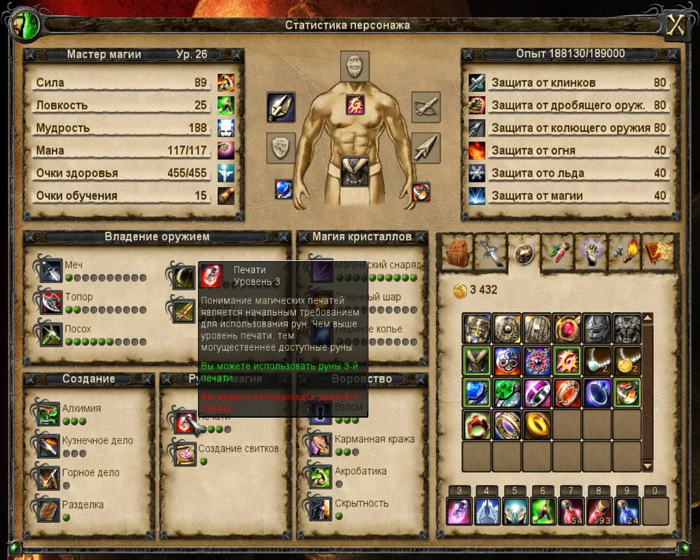 - 3 уровень печати - 150 мудрости.