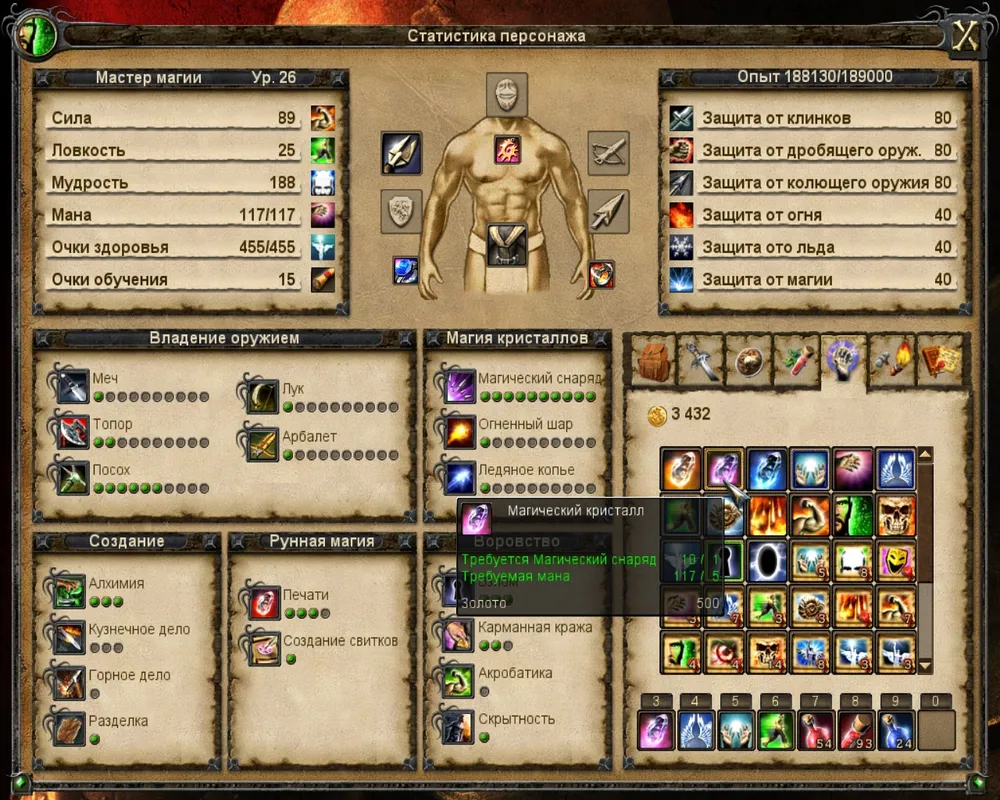- Магический снаряд (5 мана, наименьший урон, самый быстрый каст)