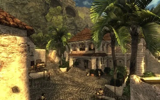 После лагеря отправляемся в Харбор-Таун, где окончательно доказываем, на чьей мы стороне. Идем к Дону — помогаем его людям. Тяготеем к Инквизиции — сдаем их. Для победы какой-то стороны нужно выполнить четыре ключевых задания (из, по-моему, шести), плюс есть целая куча побочных. Харбор-Таун на поручения и разговоры весьма богат, хотя локация, честно говоря, небольшая. В Risen по сравнению с той же «Готикой 3» мир размером вообще не поражает. Пробежаться из края в край не такое уж и долго занятие. Компактность — это очень даже здорово, ведь на этой небольшой территории концентрация интересного велика, территории не пустынны, унылые ветры тут не гоняют пыль.