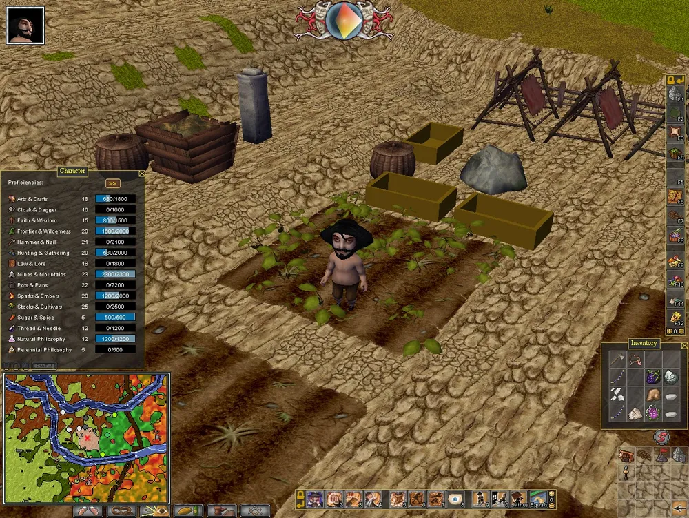 Фермерство, как впрочем и другие серьезные профессии занимает довольно продолжительное время по процессу производства. Накопив аж 175 серебра для покупки семян в Бостоне, я с нетерпением жду урожая. Рост происходит 4 дня, предварительно удобрив почву в соответствии с руководством Wiki, мы просто наблюдаем как ростки всходят и зреют. Тем временем у меня не выходит из головы тема со столбиком. В навыках появляется кузнечное дело, так.... постройка наковальни: пять слитков железа по 200 серебра в Бостоне! За то можно изготавливать дефицитные металлические гвозди х5 с 1 слитка железа. Гвозди это ерунда, по ценам сбыта Бостона металлические изделия превосходят все кожи и хлопки в разы. Но что бы выплавлять железо необходима руда,то есть начинать надо с минералогии. Снова копать деревянной лопаткой...но ведь все равно больше нечего делать! =))) Урожай будет расти себе потихоньку раз в 4 дня. За это время можно поднимать другие навыки!