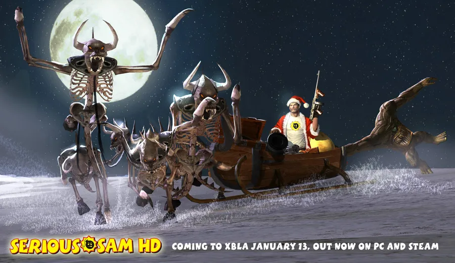 Серьёзный Сэм отмечает Новый Год в рождественской открытке, где он изображён в праздничной одежде с автоматом Томпсона, разъезжающим на санках. Также указана дата релиза Serious Sam HD на Xbox Live – 13 января.