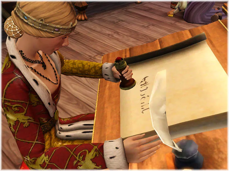 Королева Анна осуществляет королевский долг – выслушивает просителей и решает споры. Между тем ей (то есть мне) нужно думать о совсем других Спорах – тех, что падают с неба, а тут: земельные, соседские, кровожадные и по-деревенски мелочные.