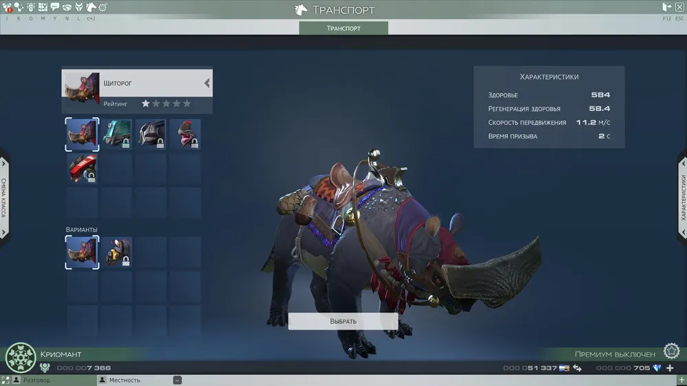 - Маунты. К сожалению, в игре пока что очень невелико разнообразие ездовых животных и средств передвижения вообще. Собственно, все, что есть, приведено на скриншоте ниже.