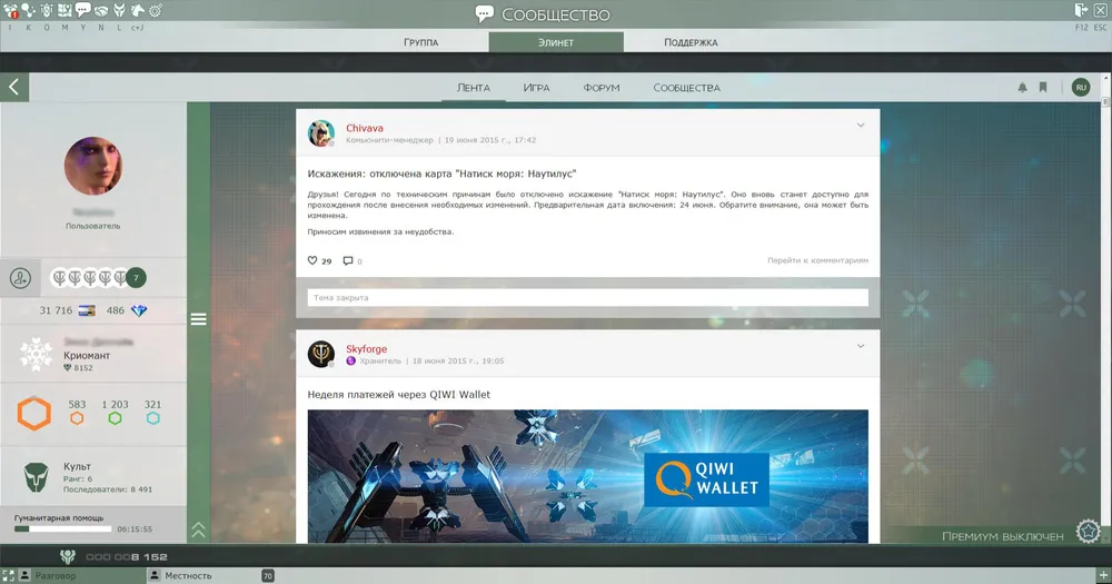 Так же у меня возникла забагованность вкладок с личными сообщениями, в следствии чего после закрытия оных, при следующем заходе в игру они снова у меня все выскакивали.
