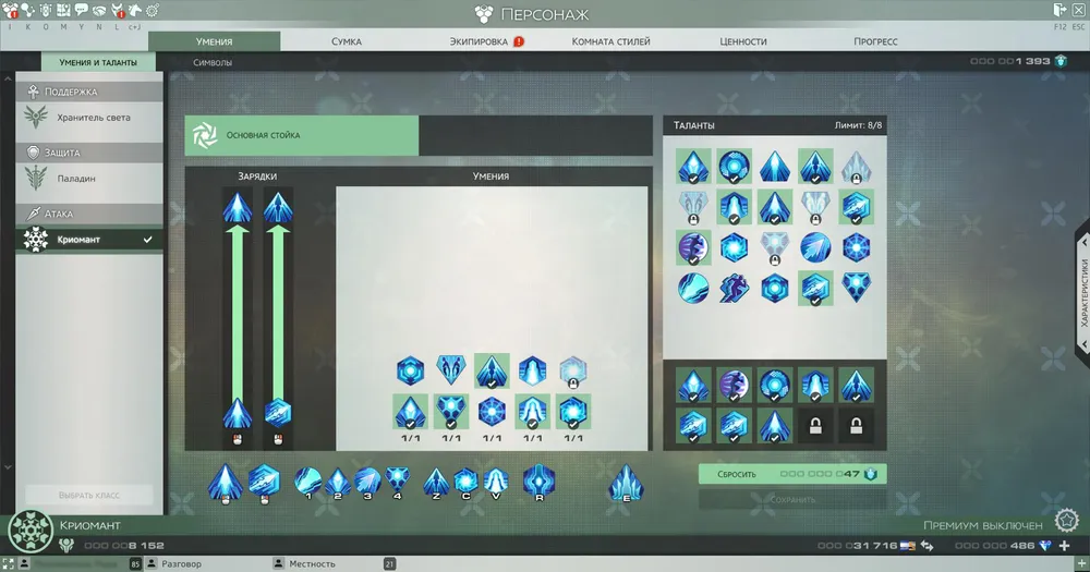 Так вы видите атлас развития определенного класса ( в данном случае криоманта ).