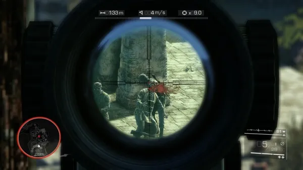 Просмотрев вступительный ролик, мы вступаем в игру. В активе – хорошая винтовка (их вообще несколько в игре, отличаются в принципе только размером обоймы), несколько магазинов к ней, пистолет с глушителем, нож, напарник (1 штука), бинокль для отмечания целей и тепловизор (включающийся клавишей V по умолчанию). Последний способен обнаруживать человека через нетолстые стены – например, дощатые, а с помощью винтовки можно через подобную преграду противника с легкостью нейтрализовать.