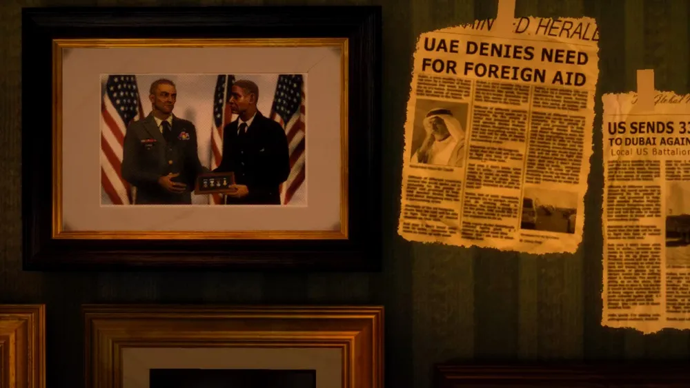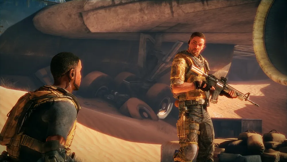 И что мы видим в игре? Да, это разрушенный и занесённый песком Дубай, в котором не осталось никого, кроме вездесущих мародёров, бандитов и прочих террористов. Главный герой — солдат (внезапно!) армии США, очередной «хороший парень», с которым постоянно бродят два его товарища, в том числе и обязательный негр.