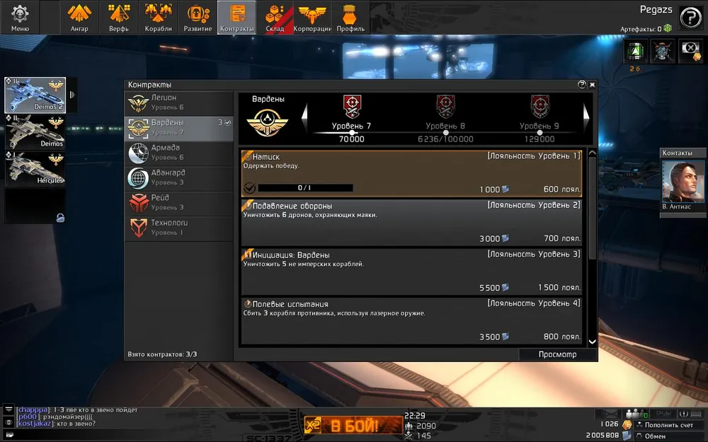 Основой выбора могут стать предпочтения в кораблях или контрактах. Помимо повышения ранга у стороны, у каждой из них есть по две подфракции, на которые можно работать. В бой можно взять до трёх особых заданий из довольно скромного списка (от банального «победить» до «убить трёх противников лазерами»), за выполнение выплачивается скромная сумма денег и увеличивается репутация в рамках подфракции.