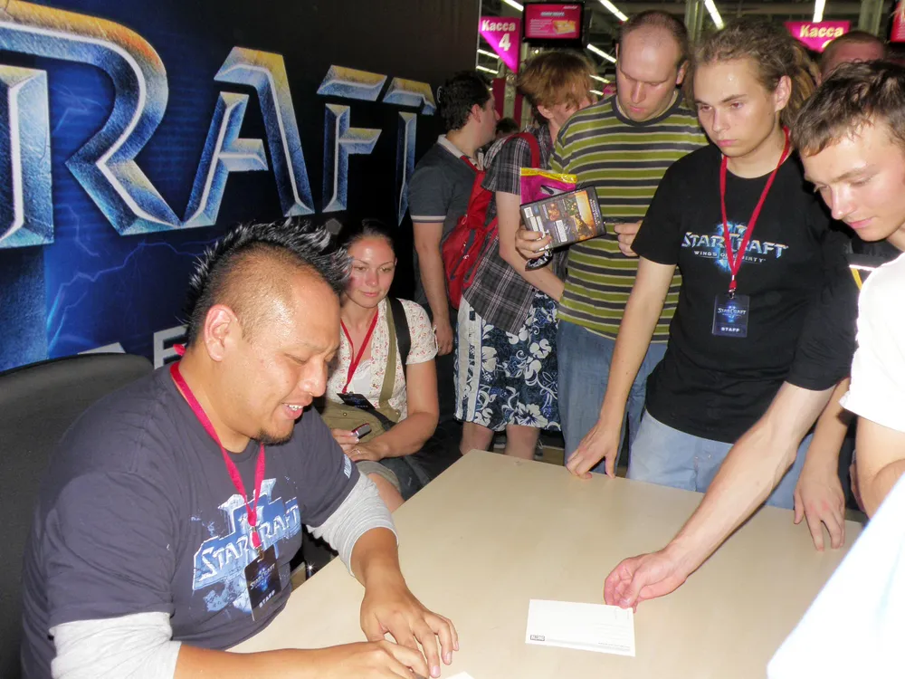 - Это – весьма интересный вопрос! Так, я приехал в Россию, но не знаю вашего языка. Когда я был в Корее на международной презентации нашей игры, то у меня не было возможности обратиться к собравшимся на корейском, но есть еще и такое понятие, как универсальный язык StarCraft, понятный всем поклонникам вселенной. Да, пускай, я не говорю на вашем или чьем-то еще родном языке, но, подписывая автографы на коробках, люди подходят ко мне и кричат: “Ура, Протоссы!”. Вот, так мы и общаемся: на языке игры. StarCraft легко помогает нам превзойти любые языковые барьеры.