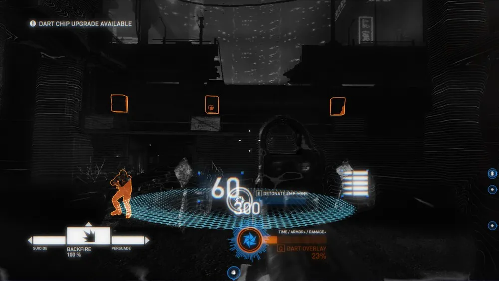 Мне всегда хотелось передать ощущение системы IPA (7) (информация, восприятие, адреналин), из оригинальной игры. Чипы, в головах агентов которые дают каждому из них определенную степень свободы во время проведения операции. Именно это стало для начальным этапом нашего воплощения системы «DART режима» (8). Пока вы находитесь в этом состоянии, чип DART подсвечивает позиции противников (информация), замедляет ход времени (восприятие) и делает игрока более сильным (адреналин).