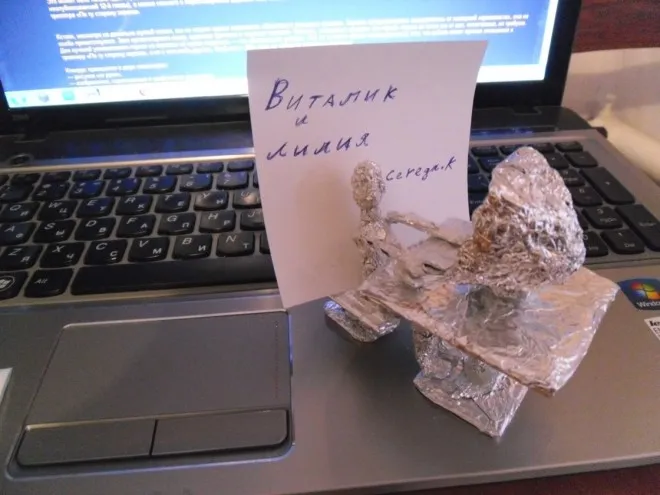 Кроме того, специальный приз от редакции — кошелёк, ручку и 70 тысяч кристаллов — получает Cerega.K. Он изобразил героев триллера с помощью фольги. Конечно, эту работу было просто невозможно классифицировать по какой-либо из номинаций, но за оригинальность идеи мы решили наградить нашего доморощенного «Церетели» спецпризом.