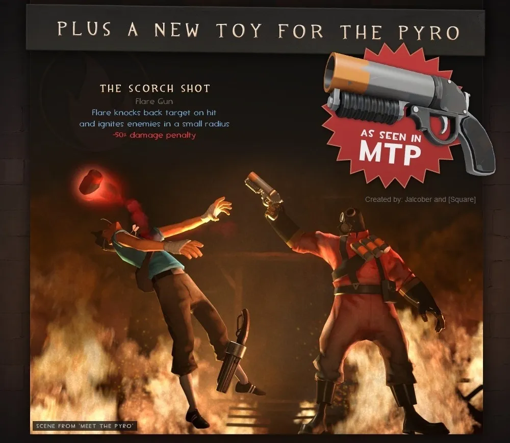 Начну с того, что сегодня наступил 2-ой день предапдейтовой лихорадки по поводу масштабного обновления Pyromania в Team Fortress 2. Valve снова дали нам почву для размышлений в виде нового сообщения в блоге. Прочитав сообщение, мы видим много новой информации (КТО ПО МАСКОЙ ПИРО, ЕЛЫ-ПАЛЫ!!!1%;№@*()#). Сегодня нам были представлены новые виды вооружения, которые будут помогать нам в нелегкой борьбе за ракету обезьянавта Джо...