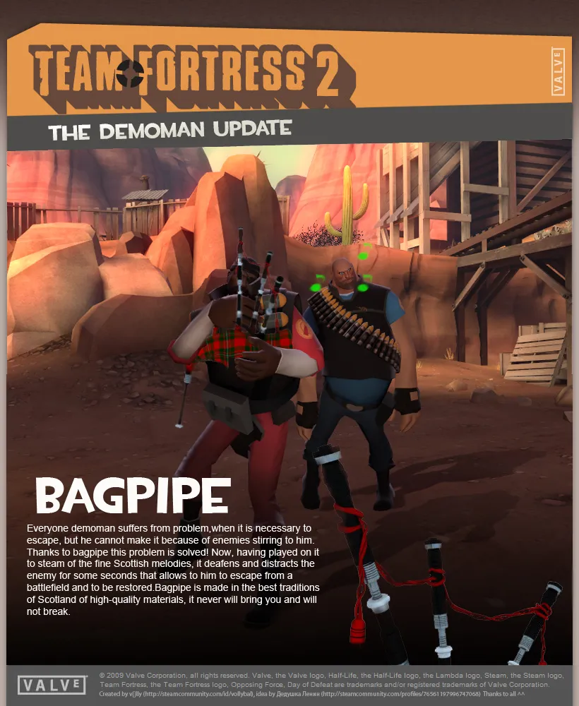 Ахахаха Волынка для шотландца=) А еще ему вместо шапки - юбку, только придется менять насмешку со смайликом, иначе игра будет 18+ =)