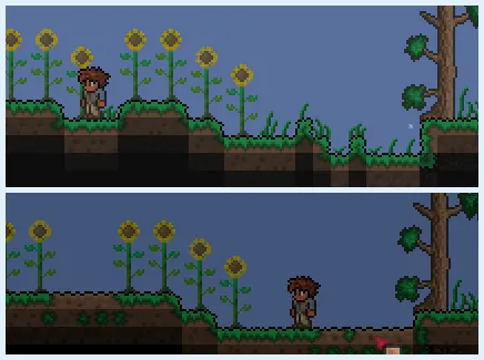 Исследуя мир, следите за цветом неба. Он меняется в течение дня: оранжево-розовый на рассвете, голубой днем, снова оранжево-розовый на закате. Если небо вдруг стало желтовато-зеленым - немедленно остановитесь и бегите обратно. Это значит, что вы нашли зону искажения. Живущие в ней монстры пока еще слишком опасны для вас.