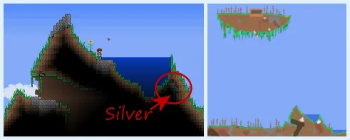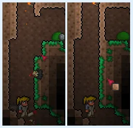 Исследуйте эти пещеры. Но перед тем, как спускаться вниз, убедитесь, что вы взяли достаточный запас деревянных платформ и факелов. Не ходите туда ночью, потому что там могут рождаться зомби и падать сверху вам на голову. И слишком глубоко не ходите - остановитесь, когда вам начнут попадаться красные и желтые слизни.