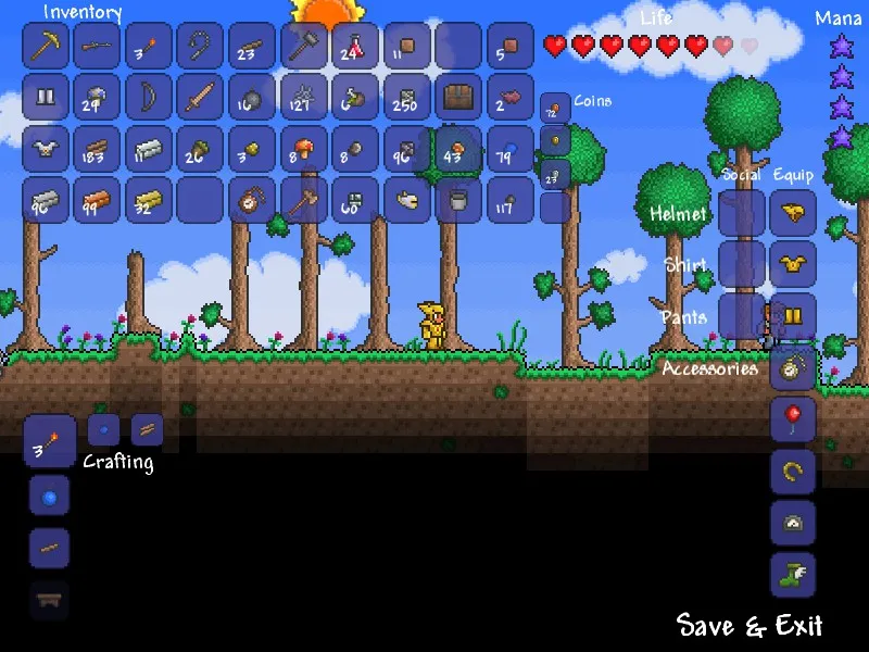 Terraria взяла от MMO немалое количество черт. Горы противников, чёткое разделение локаций, финансовую систему и, конечно же, мотивацию из разряда «собрать всё самое лучшее».