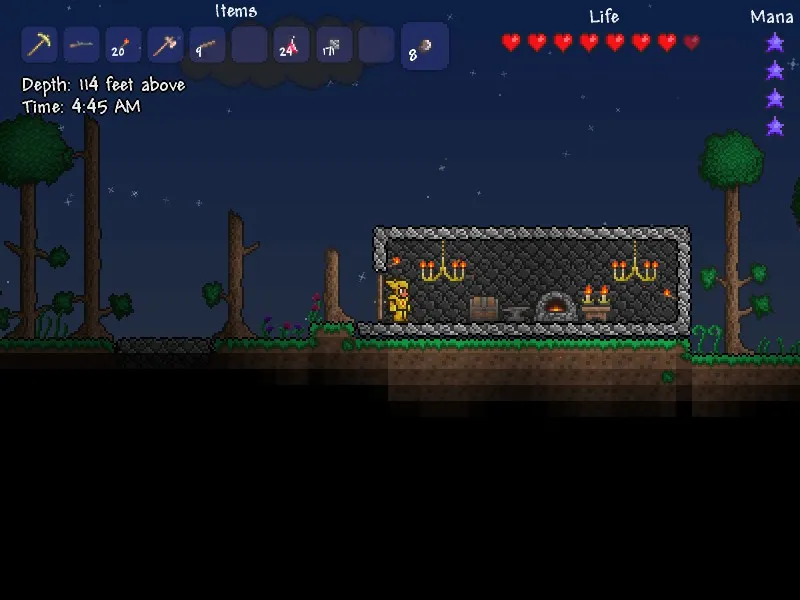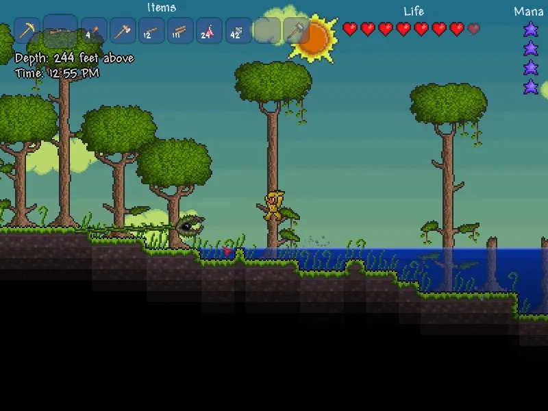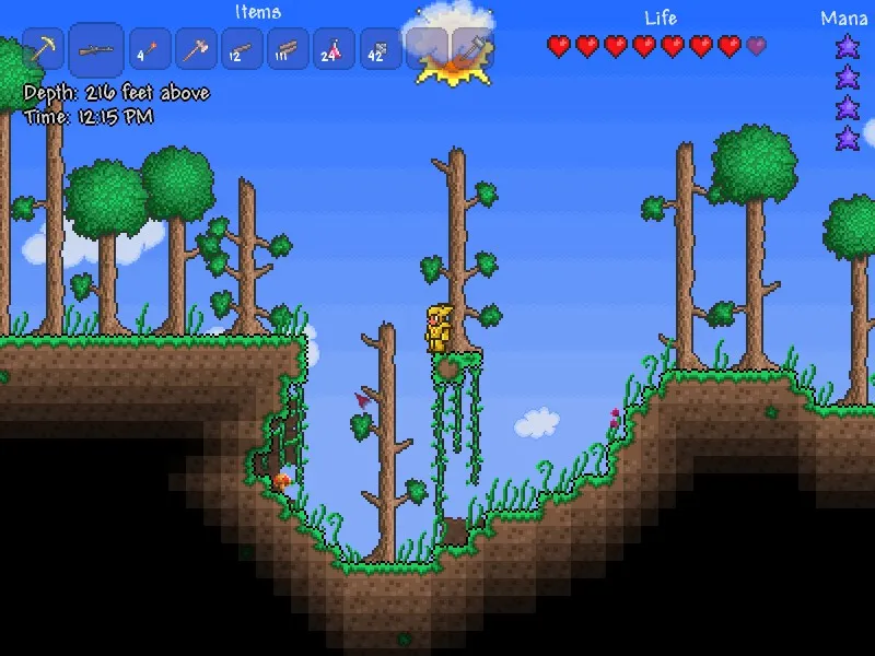 Но даже если вышенаписаное ещё можно попытаться как-то оспорить, то на то, что главное в MineCraft — это мир, а не персонаж, возразить особо нечего. Вот именно в этом месте в Террарии был совершён резкий манёвр в сторону...