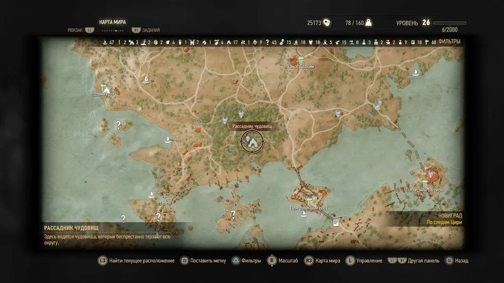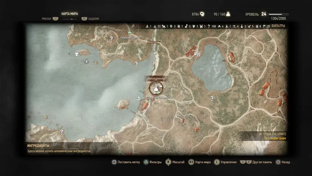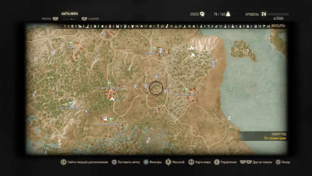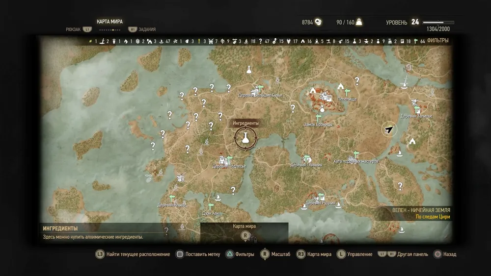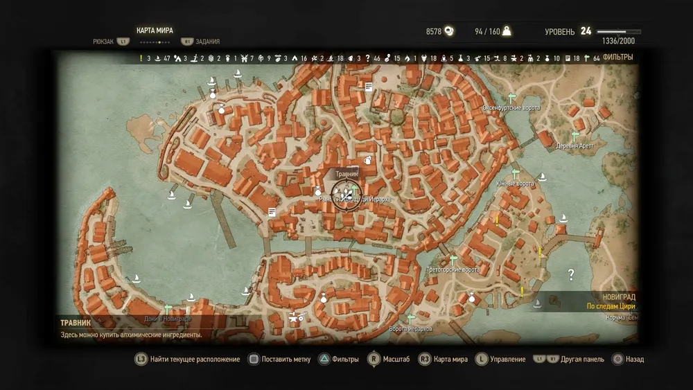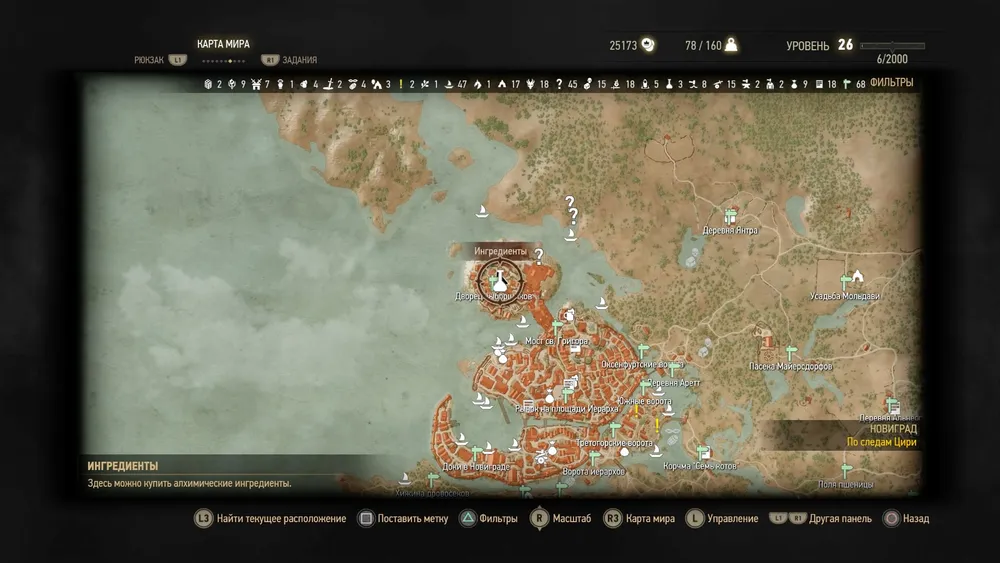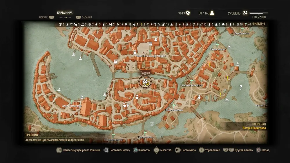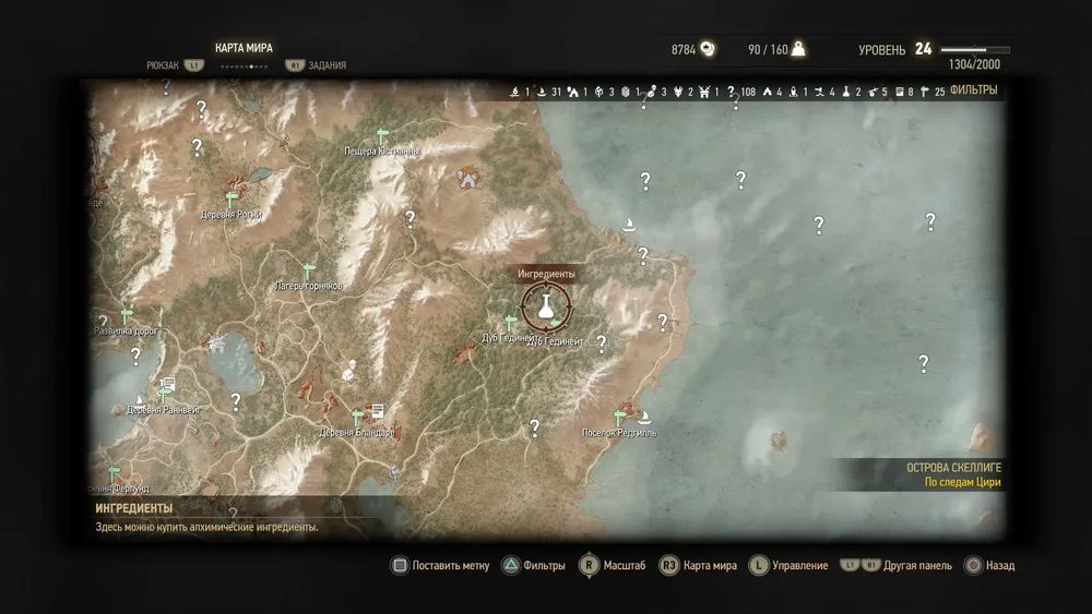 В поисках рецептов придется побегать. Многие из них прячутся в сундуках с лутом. При этом тайники, отмеченные на карте знаками вопроса, вовсе не обязательно содержат в себе рецепты. Напротив, гораздо чаще они выпадают из сундуков, вообще никак на карте не обозначенных. Не стоит забывать и про книги, из которых можно вырвать пару рецептов отваров. А еще обязательно пройдитесь по всем травникам. Места их обитания обозначены на картах (см. ниже). Если я кого-то важного из них упустил, сообщите мне, пожалуйста, в комментариях. Помогите мне найти их всех!