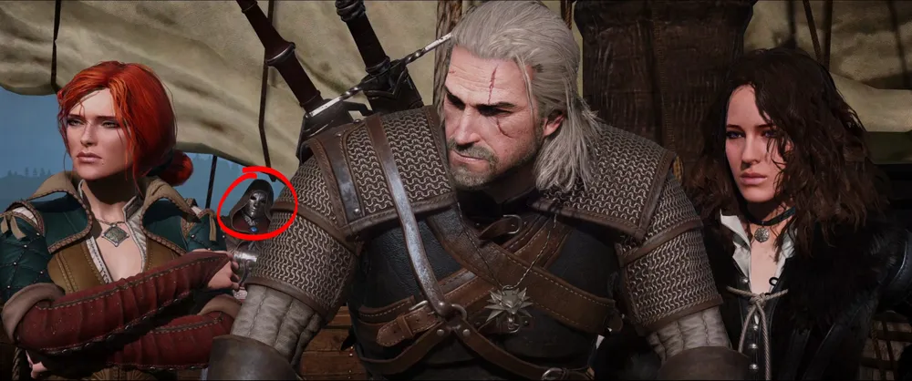 На англоязычом форуме разгорелись нешуточные дебаты по поводу того, кто же этот человек в маске. Мнения разделились. Одни считают, что это Регис, другие - что Вильгефорц. Хотя, учитывая события "Владычицы озера", появление обоих в игре весьма сомнительно. – Прим. Elle.