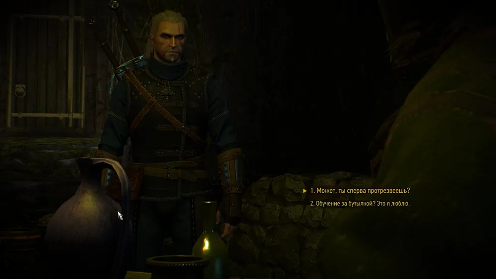 2. Визиту ведьмака мастер рад не будет и с ходу заявит, что наш герой ему мешает. Тем не менее они сумеют договориться (в диалоге с алхимиком можете выбирать любые фразы, итог беседы будет все равно одним и тем же). Гремист готовится провести один очень сложный ритуал, и ему не помешала бы чья-нибудь помощь. Поэтому он даст нашему герою три поручения: раздобыть для него цветок курослепа из лесов Морскогена, бутылку спирта из старой винокурни на Градовой горе и привести к нему друида Фритьофа, уехавшего в Бландере по делам. Если Геральт с ними справится, его возьмут в ученики. Сразу же ответить согласием (реплика: «Хорошо, я сделаю это») или поподробнее расспросить про каждое задание – решайте сами, как поступить. Впрочем, лишней информации не бывает.