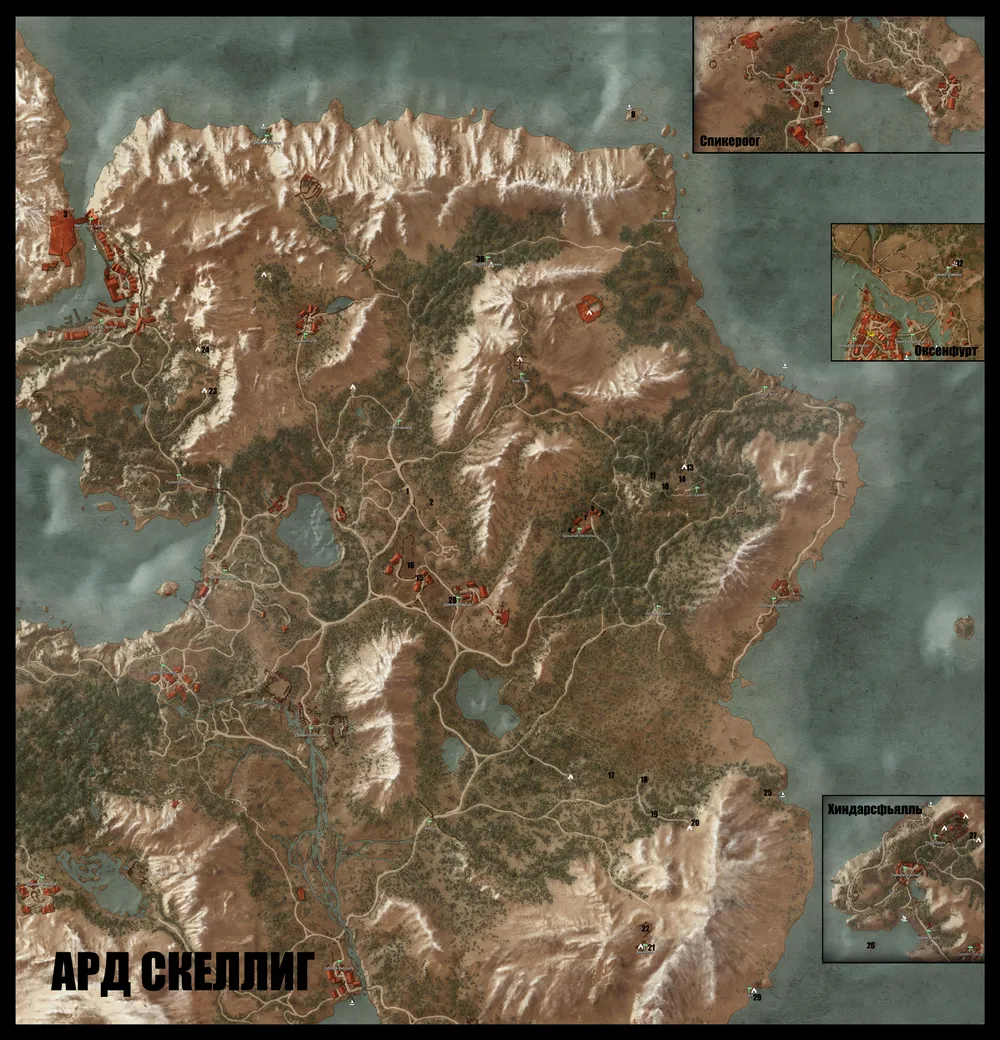 В целях удобства прохождения квесты, этапы выполнения которых отслеживаются в Журнале, упорядочены по рекомендуемому уровню. Все места, значимые для прохождения упомянутых в посте квестов, указаны на карте Ард Скеллиг. Она кликабельна, и она просто огромна. Ради собственного же удобства не поленитесь раскрыть ее полностью в отдельной вкладке браузера и при необходимости увеличить.