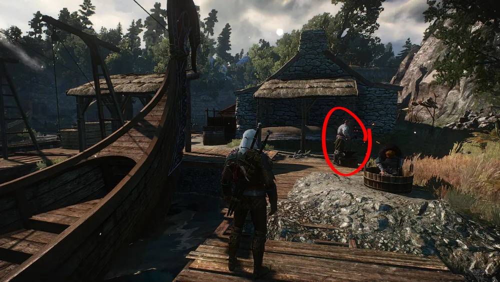 5. Тиммона Геральт застанет на причале у наковальни (8).