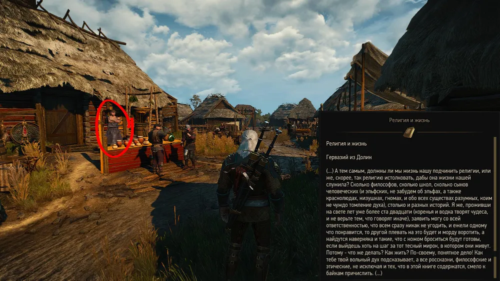 - «Я этим займусь» – услыхав слова согласия, рыбак попросит нашего героя поискать тех, кто ушел в башню. Геральт не станет отказываться.