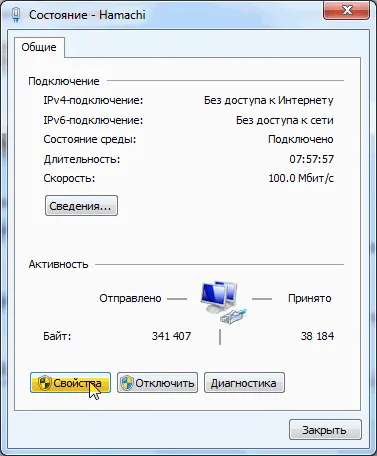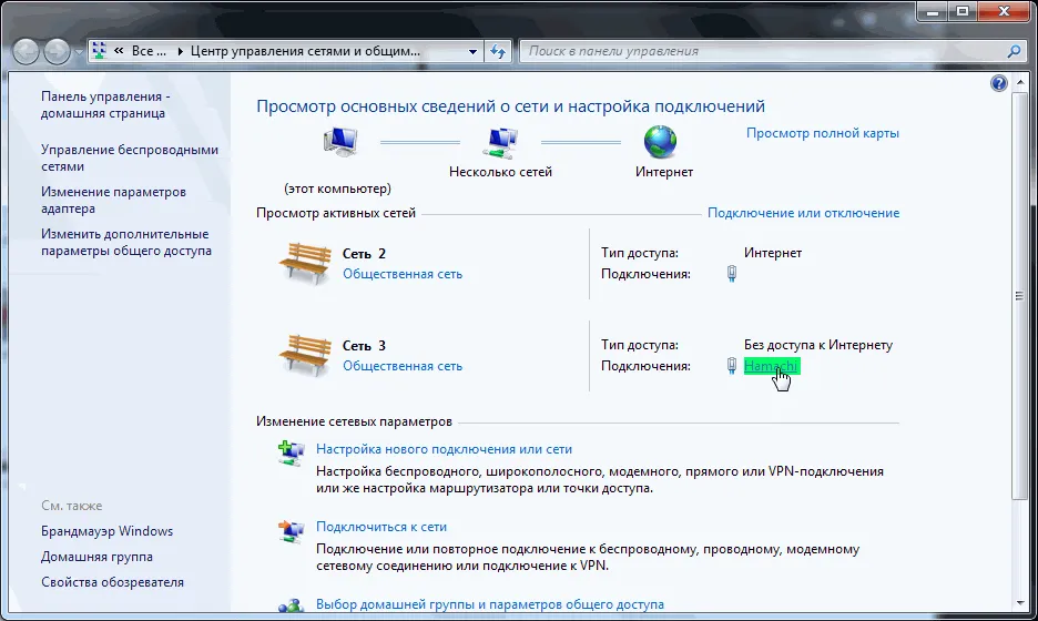 Нажмите на соединение "Hamachi".