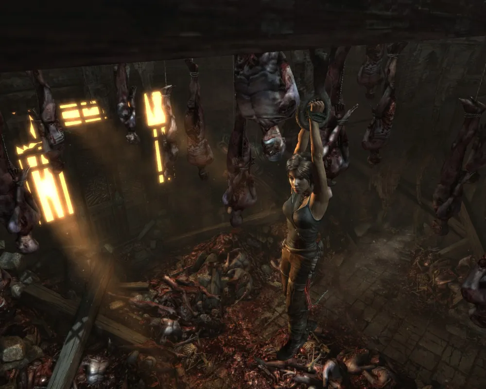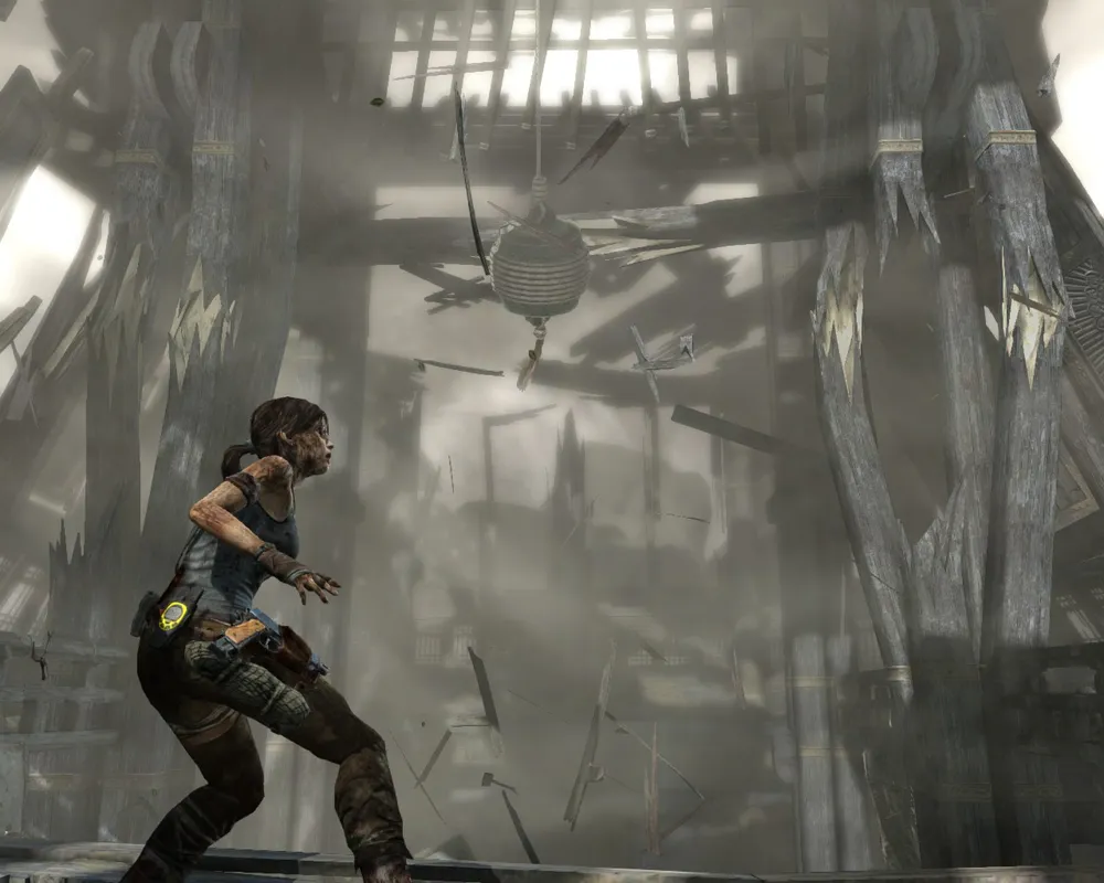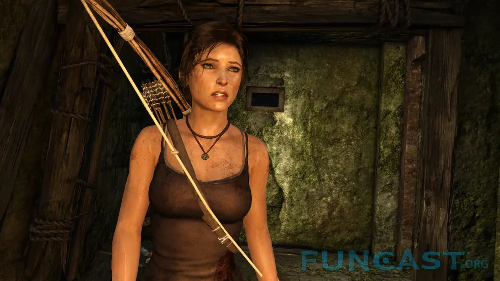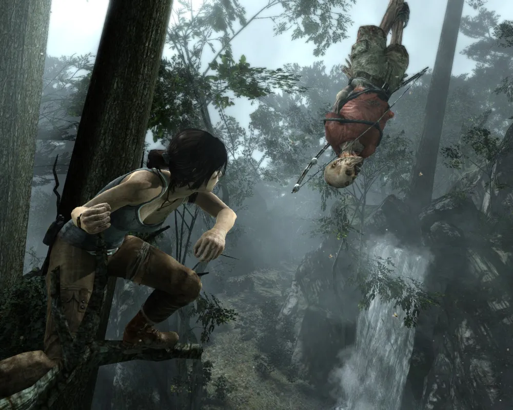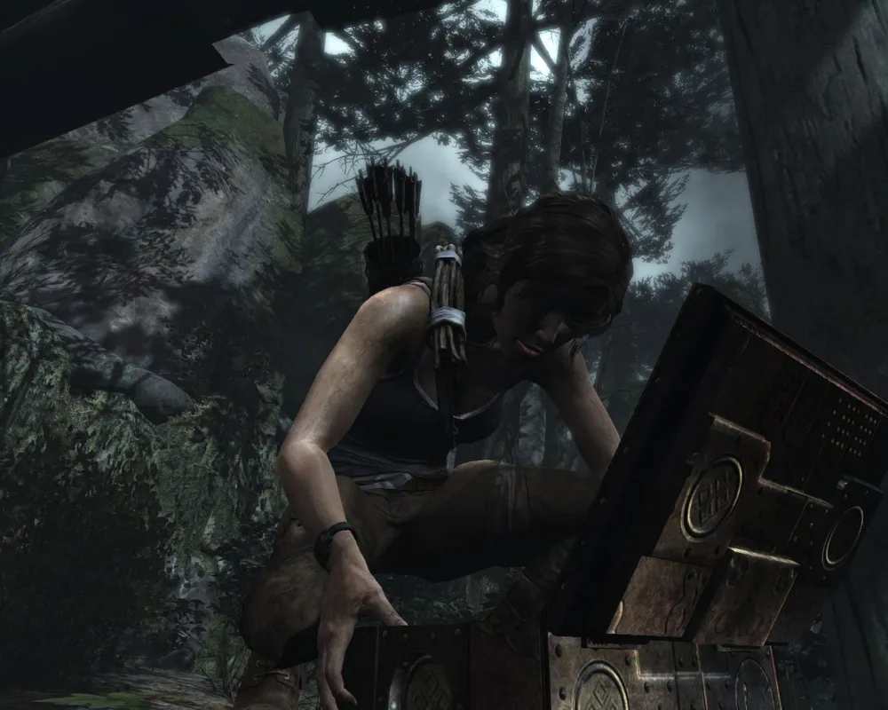 Классические кульбиты на месте — ползаем, бегаем, прыгаем, цепляемся, висим, срываемся. Единственное, что хочу отметить. В отличие от какого-нибудь Assassin`s Creed, в Tomb Raider постоянно что-то случается в элементами окружения. Верёвочные мосты обожают обрываться; Приколоченные доски любят отваливаться или изгибаться каким-нибудь особо хитрым способом. "Поседевший" древний японский дворец будет разваливаться под пятой хрупкой Лары, превращаясь в запутанный и смертоносный лабиринт, пройдя который у Крофт обязательно появятся сотня-другая заноз, а то и пара-тройка свежих шрамов. Тело Лары (без пошлостей) является еще одним элементом игры, за которым интересно наблюдать. С каждым новым сюжетным роликом внешний вид Лары будет сильно меняться. Маленькая дырочка на штанах через некоторое время превратится в огромную дыру. Рана на переносице пройдёт с Ларой через всю игру, не исчезнув внезапно в какой-то момент. А также сотни других мелких косметических изменений не пройдут просто так.