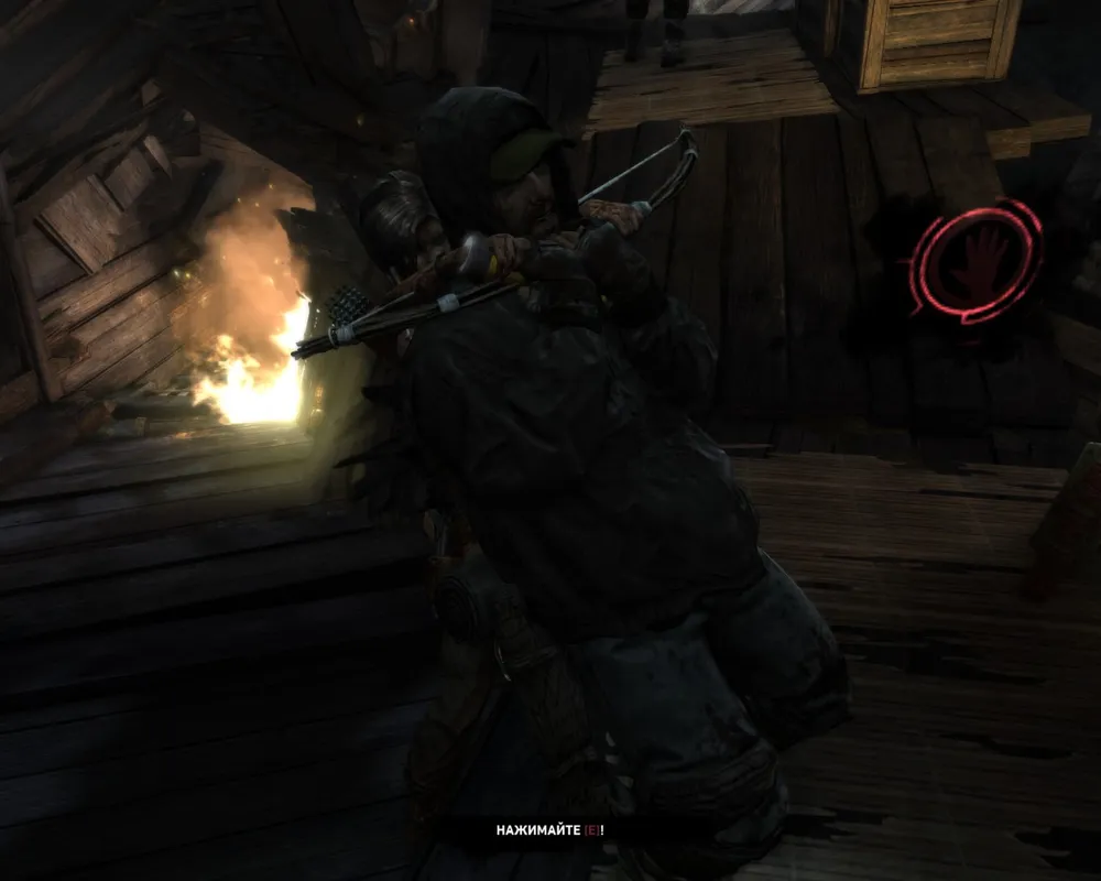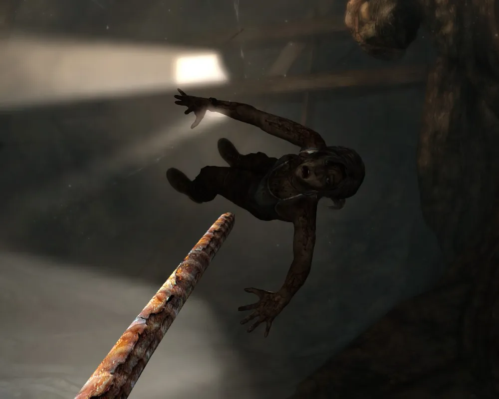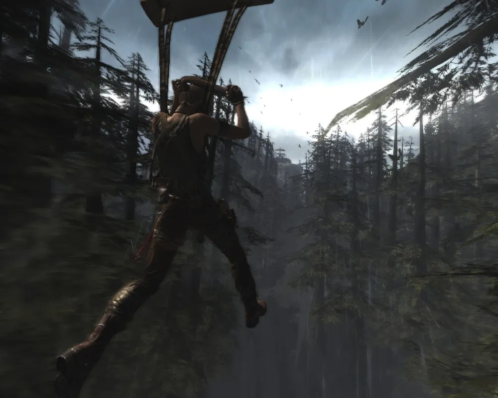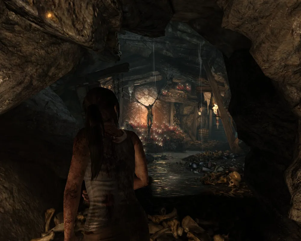 Классические кульбиты на месте — ползаем, бегаем, прыгаем, цепляемся, висим, срываемся. Единственное, что хочу отметить. В отличие от какого-нибудь Assassin`s Creed, в Tomb Raider постоянно что-то случается в элементами окружения. Верёвочные мосты обожают обрываться; Приколоченные доски любят отваливаться или изгибаться каким-нибудь особо хитрым способом. "Поседевший" древний японский дворец будет разваливаться под пятой хрупкой Лары, превращаясь в запутанный и смертоносный лабиринт, пройдя который у Крофт обязательно появятся сотня-другая заноз, а то и пара-тройка свежих шрамов. Тело Лары (без пошлостей) является еще одним элементом игры, за которым интересно наблюдать. С каждым новым сюжетным роликом внешний вид Лары будет сильно меняться. Маленькая дырочка на штанах через некоторое время превратится в огромную дыру. Рана на переносице пройдёт с Ларой через всю игру, не исчезнув внезапно в какой-то момент. А также сотни других мелких косметических изменений не пройдут просто так.