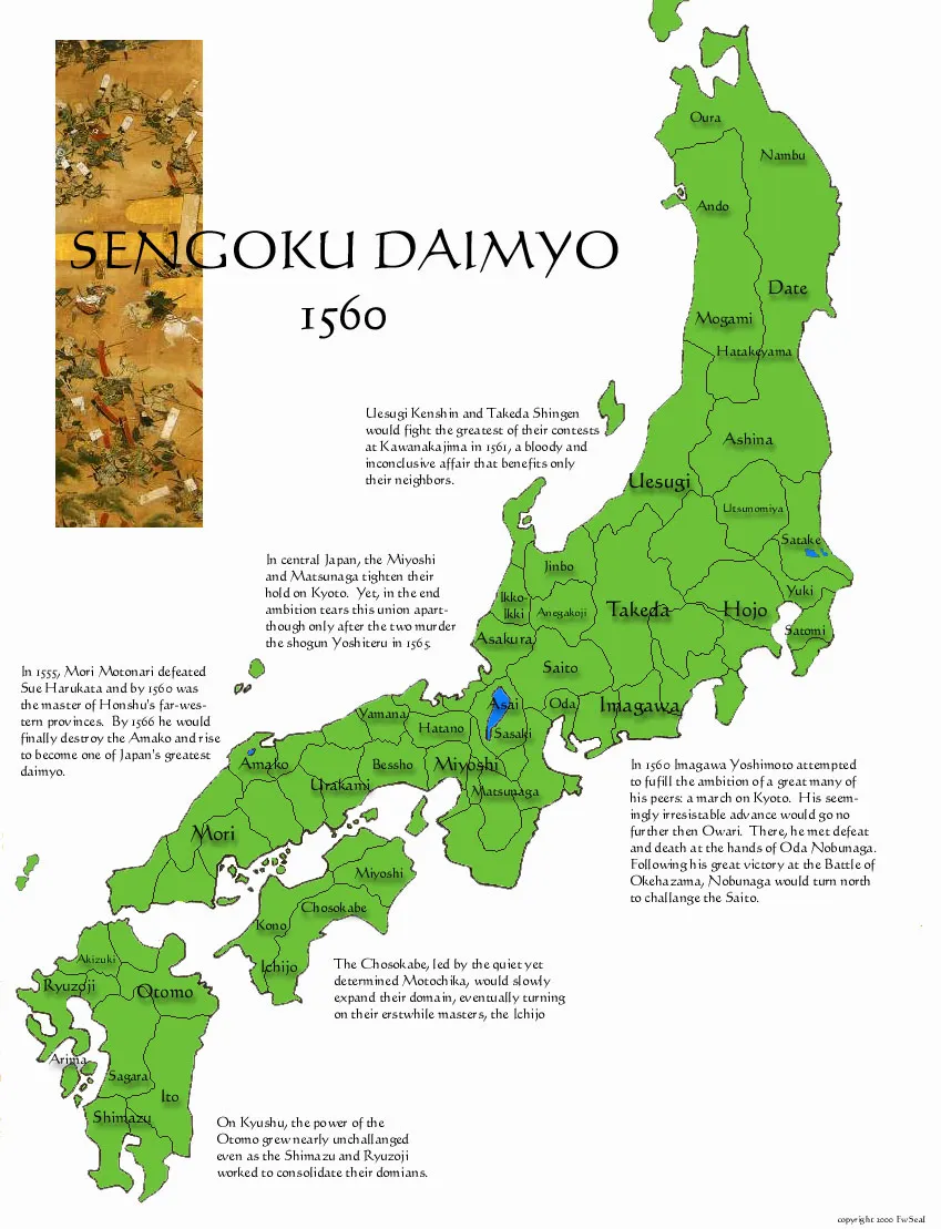 Следует отметить, что каждый любитель стратегии серии Total War прежде чем приступать к игре, читает или смотрит целые тома истории, которые затронут временный промежуток игры. Будь то художественная или документальная литература, все сводится к одному: почерпнуть все знания и быть подготовленным к тотальным сражениям и хитрым дипломатическим маневрам. И Total War: Shogun 2 не исключение. Игра, как мы знаем, будет посвящана периоду Сэнгоку Дзидай (период враждующих провинции) и возможно в игре мы увидим легендарных иторических личностей в лице: Такэда Сингэн, Уэсуги Кэнсин, Тоётоми Хидэёси, Ода Нобунага, Токугава Иэясу. И стоит отметить роль Оды Нобунаги, Тоётоми Хидэёси и Токугава Иэясу в становлении Японии, как объединенного государства.