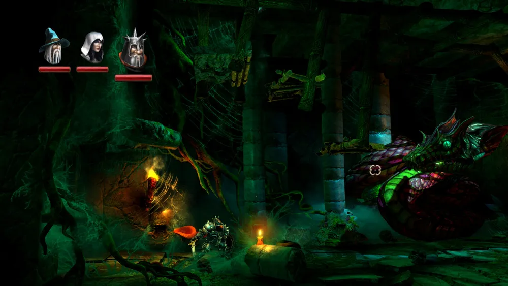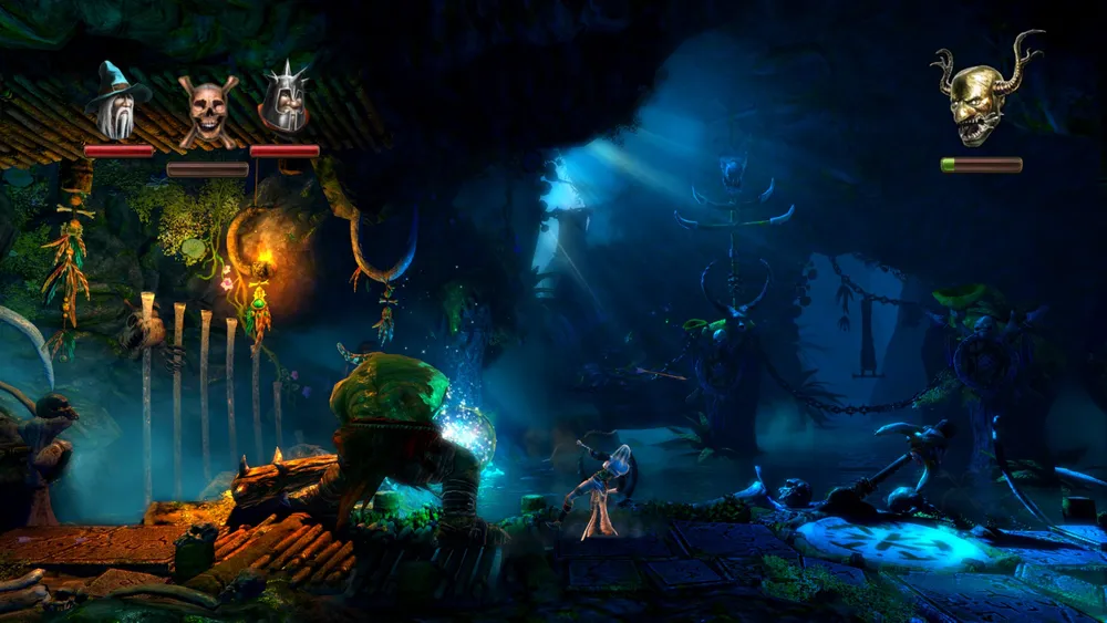 Игровая механика со времен первой части Trine практически не изменилась. Нам опять предстоит управлять одним из трех героев, в зависимости от ситуации переключаясь между ними. Понтий как нельзя лучше подходит для разрешения конфликтных ситуаций со всякими гоблинами, троллями, ядовитыми паукам и прочими тварями. В серьезном бою только он может противостоять десяткам врагов, умудрившись при этом не умереть. Кроме того, его сила очень часто помогает для разрушения различных баррикад и препятствий, периодически возникающих на пути следования команды. Амадей – главная палочка выручалочка в Trine 2. Благодаря одним лишь его способностям можно пройти большую часть игры, при этом не переключаясь на других членов команды.