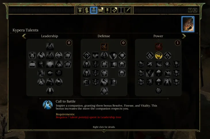 По мере того, как члены отряда растут в уровне, они могут улучшать атрибуты, приобретая новые таланты на соответствующем древе. Ваш персонаж имеет шесть различных деревьев, таланты на которых вы можете приобрести, в то время как спутники будут иметь собственные уникальные ветки.
