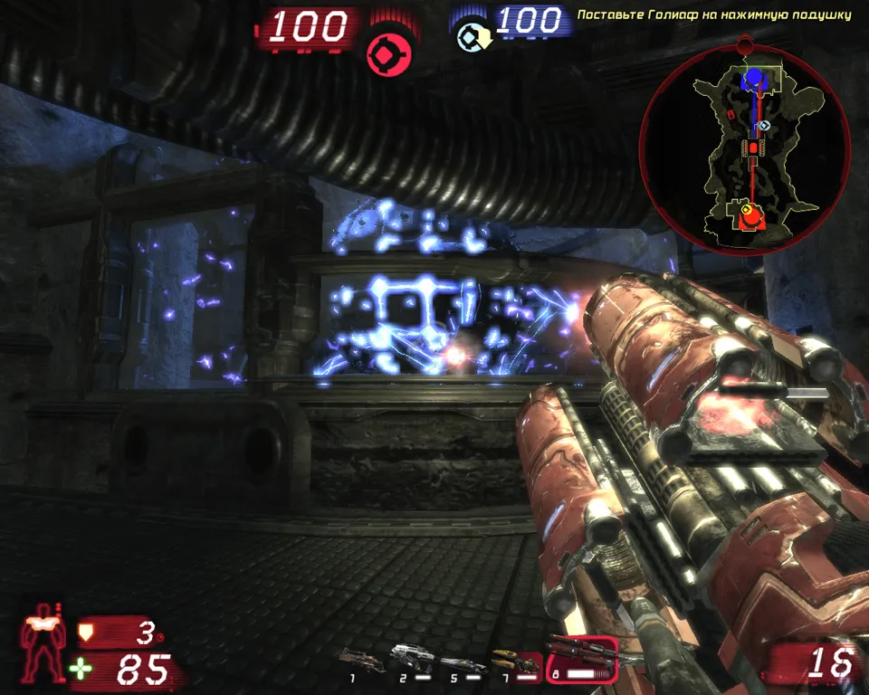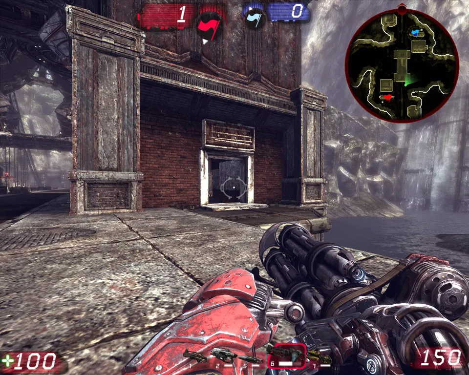Карта невелика; здесь всего одна контрольная точка, и у нее нет никакой защиты — просто «голый», если можно так выразиться, столб света. И на первый взгляд кажется, что делать здесь нечего. Прыгнули к контрольной точке — и стреляем вволю, авось пуля найдет свою цель. Здесь всегда очень много народу, промахнуться сложно. Но если вы хотите принести команде реальную пользу и не видите себя в роли пушечного мяса, стоит действовать с умом. Как уже не раз говорилось, Unreal Tournament 3требует от игрока не только отличных рефлексов.