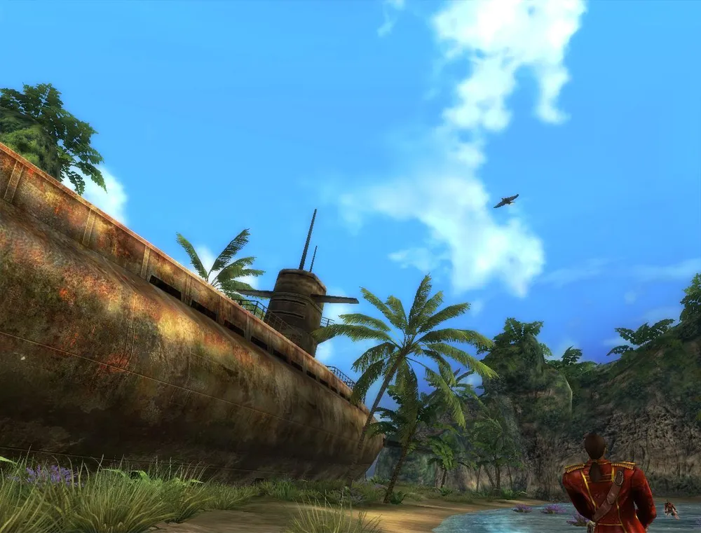 Но на деле все совсем по-другому. Огромная ржавая подводная лодка, принесенная сюда одним из знаменитых американских ураганов, и древние руины стали укрытием для разбойников и пиратов.