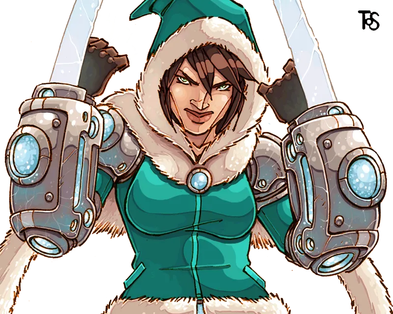 Когда шум грозы слышен на горе Mont Glatz, в то время как яркое солнце разогревает лед и не видно ни облачка, можете не сомневаться: это Ayah собирается мериться силами с противником. Экипированная двумя ледяными клинками, она демонстрирует замораживающие молнии и является одной из самых грозных воительниц клана. Ее оружие выковал Brok, старейшина клана йети; оно непревзойденного качества и может, по преданию, разрезать небо на две половины.