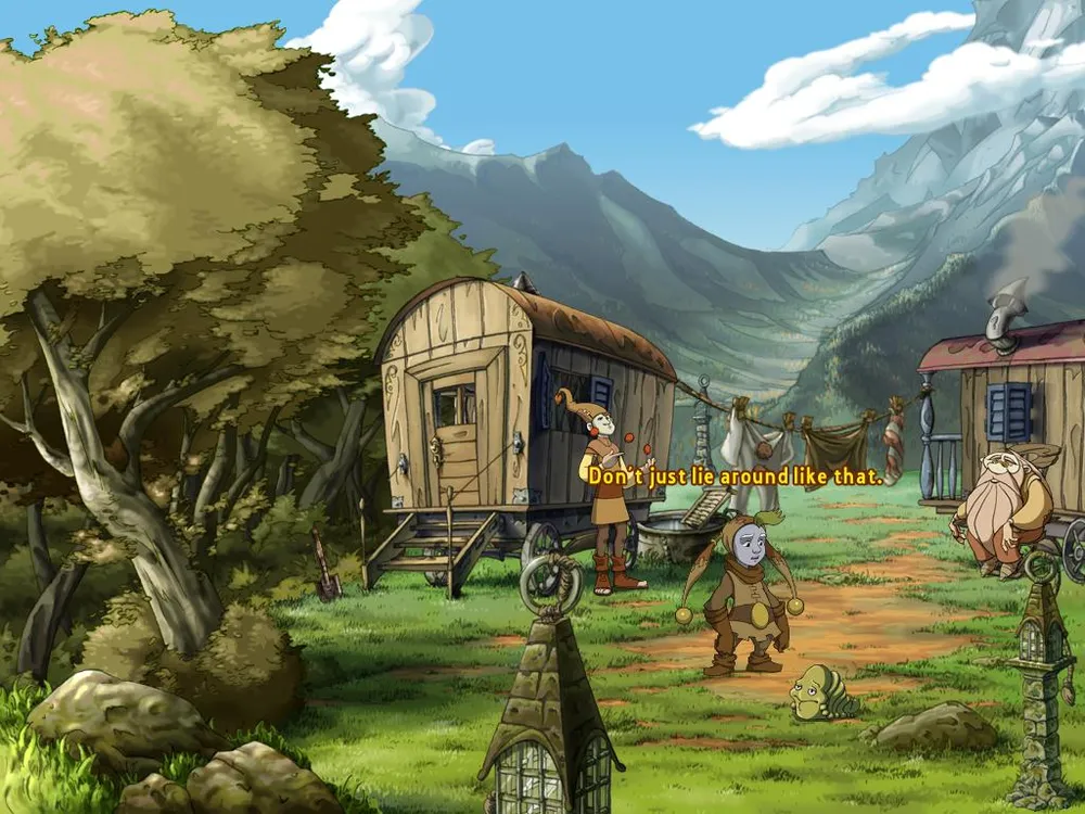 И вот The Whispered World как раз такая «не детская» игра. С какой стороны ее разглядывать не будешь — ну не взрослый это проект. Рисовка специфическая, как мультфильм для самых маленьких. Герои — нарочито злые, излишне веселые, чуть ли не фантастические. Таких в жизни не бывает… А может мы просто их не видим.