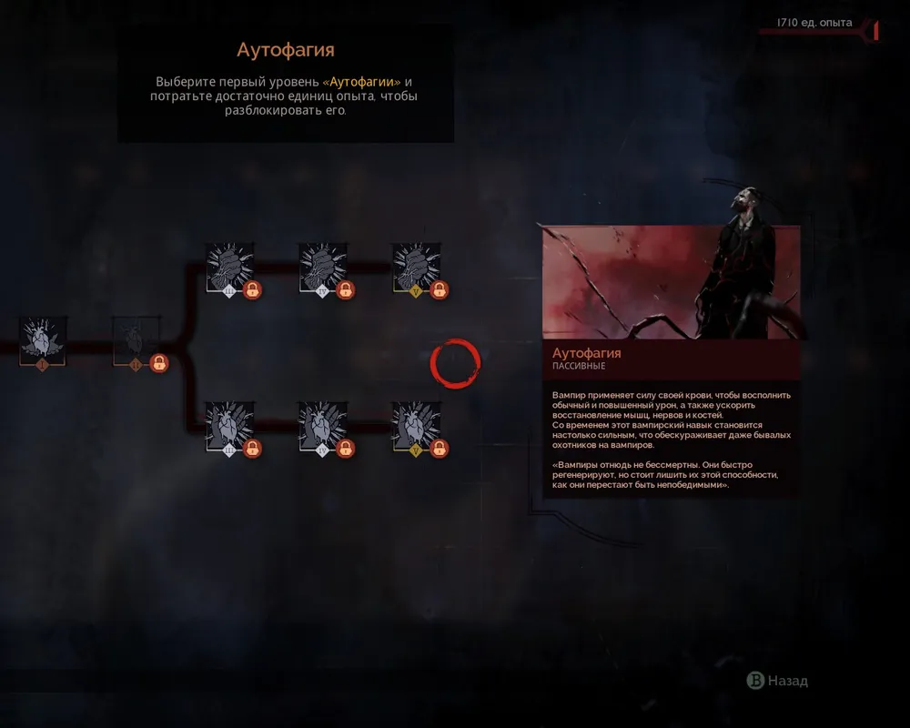 Развитие в игре обставлено довольно интересно. Вы не можете улучшить навыки в любой момент. Вам обязательно нужно забраться в убежище, «настроиться», выбрав нужные, и залечь в вампирскую спячку на целый день. А на следующую ночь вы встанете с новыми способностями или увеличенной статистикой.