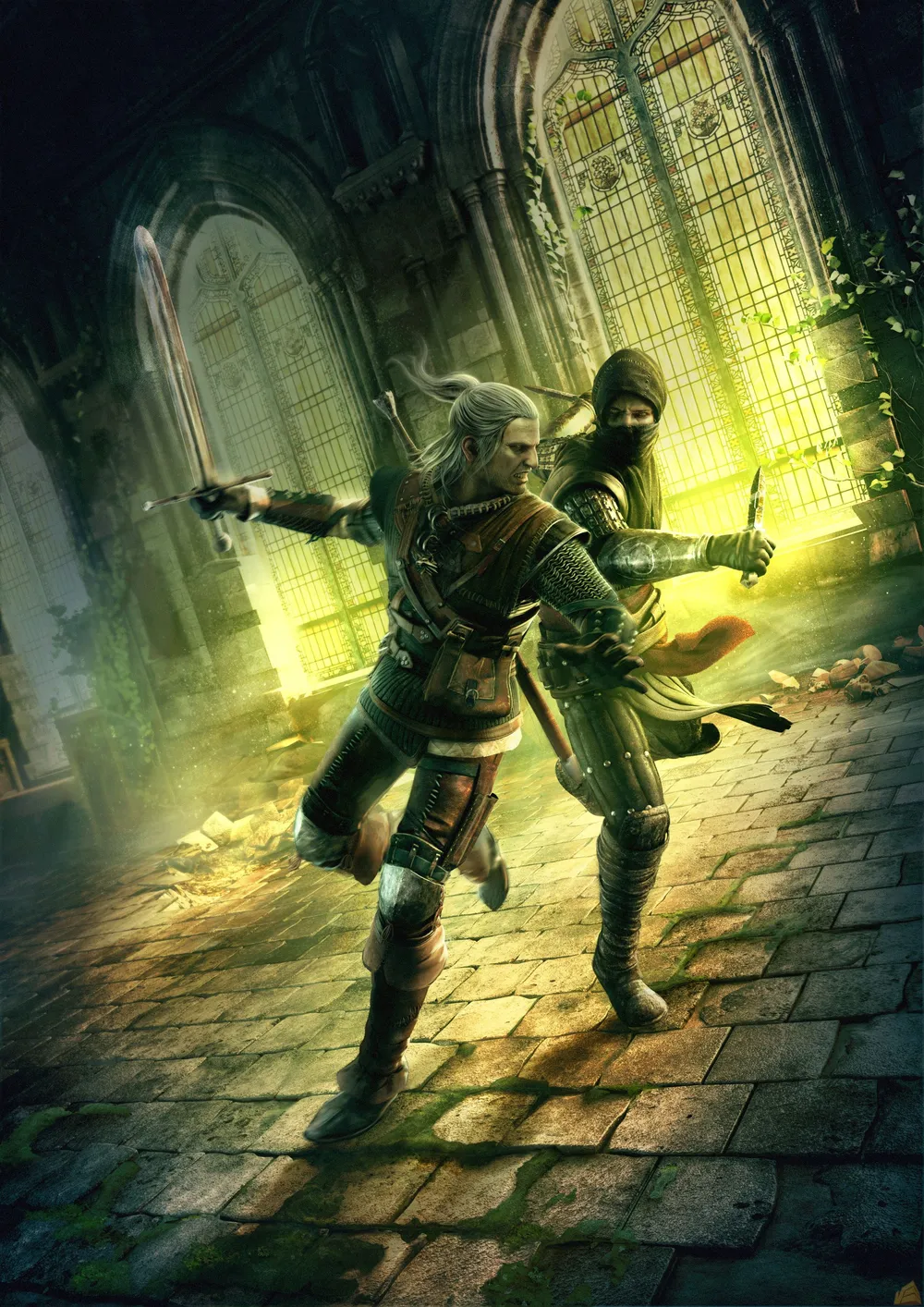 Все тот же бой Геральта с наемным убийцей короля, но уже в большем разрешении и в двух вариантах оформления.