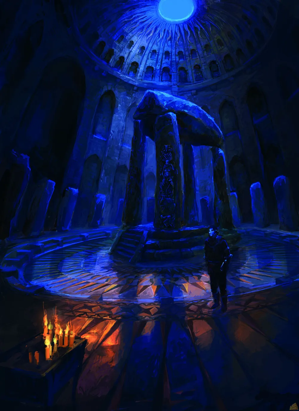 Каменный истукан, держащий огромную плиту. Вероятно, гном... Отличный арт.
