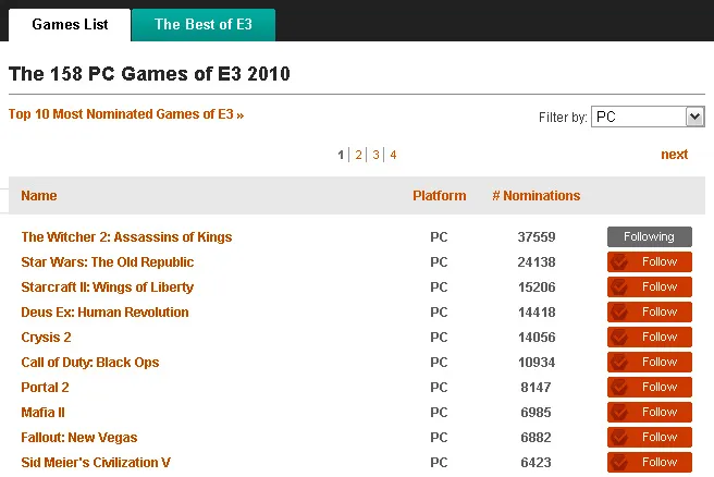 p.s.: В голосовании на лучшую игру Е3 2010 (которое закончится сегодня вечером), "Ведьмак 2", появившись там одним из последних, уверенно лидирует с огромным отрывом.
