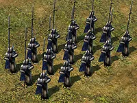 Стражи Цитадели. Стоимость - 350. Место найма - казармы, 1 уровень. Очки командования - 60. Преимущество против кавалерии. Здоровье - 320-400 XP. Способности - еж (стражи встают в круг, выставив копья). Элитная пехота Гондора. Составляют основу атакующей армии и хорошо справляются с конницей.