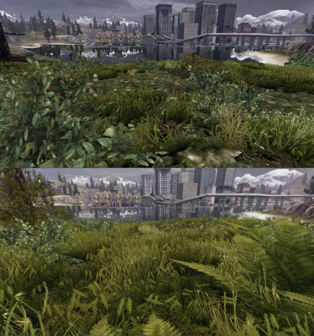 Над улучшенной графикой травы и растений работает некий RussianKaliber и его команда. Ниже представлены их труды (верх до, низ после):