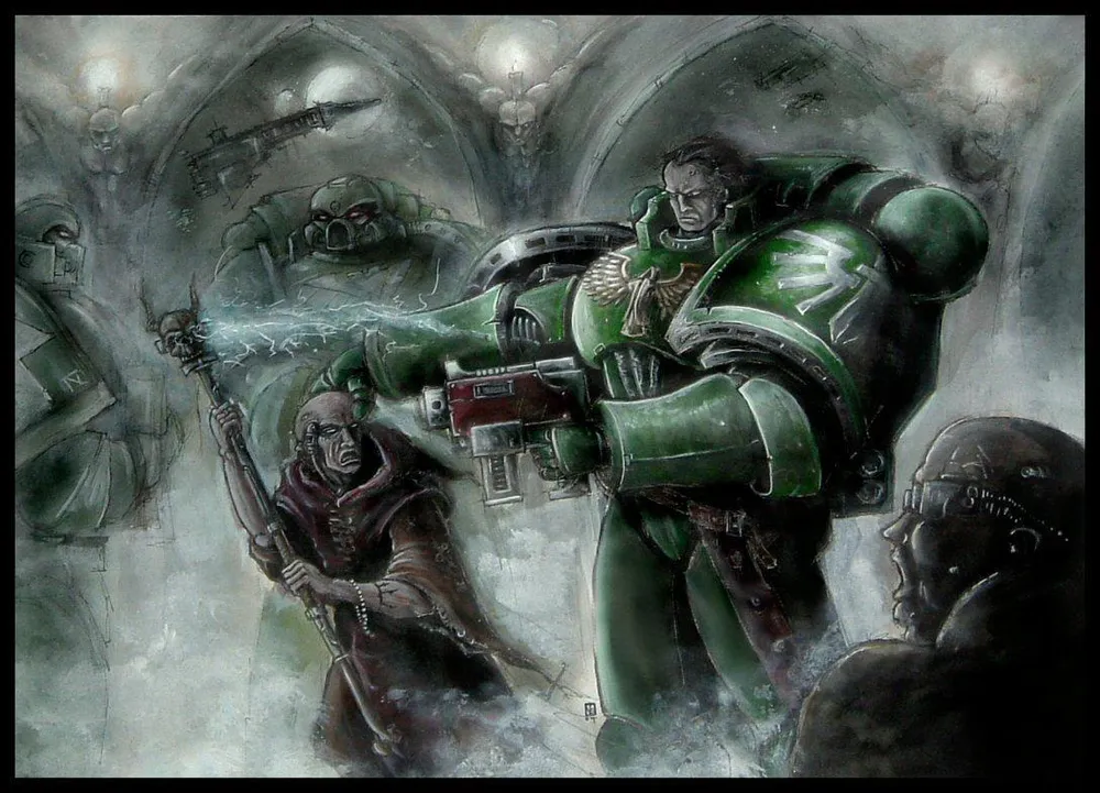 Тёмные Ангелы — одни из немногих космодесантников, носящих поверх доспеха мантии.