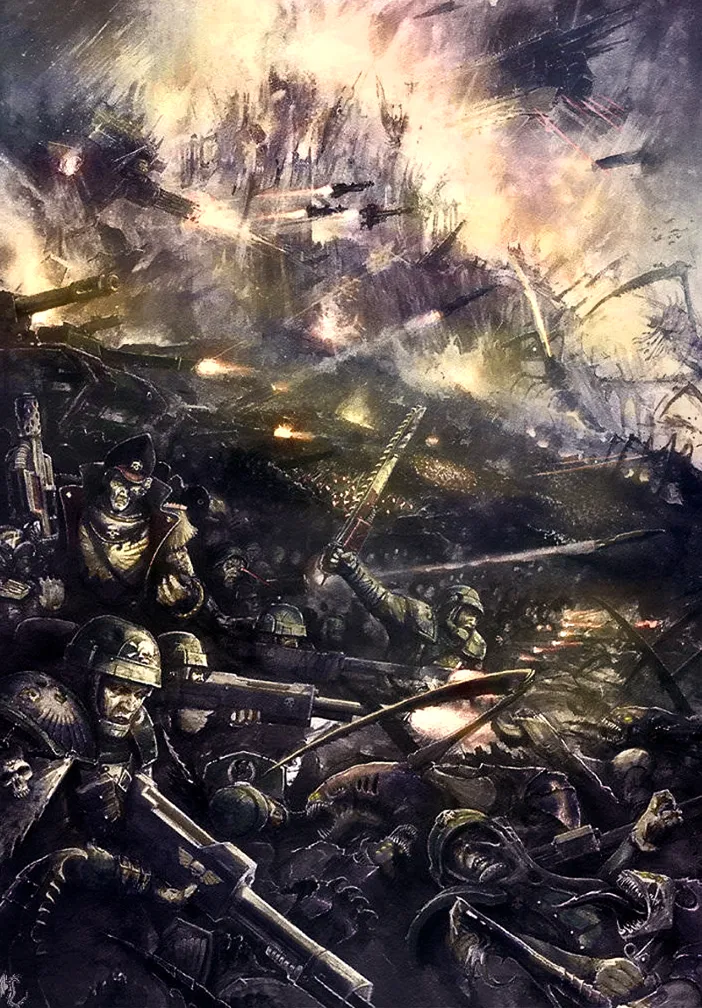 Из небесной тьмы спускались огромные силуэты. Твари выводка типа «Карга», основные десантные организмы тиранидов. Кэн читал о них. Но увидеть их, их размеры, почувствовать их омерзительную вонь… это убивало его разум.