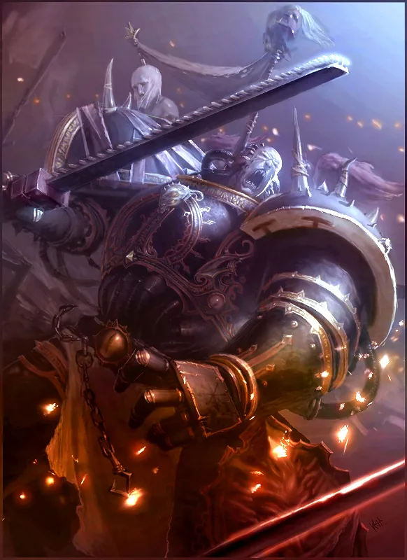 Старый Саарайн поспешил на помощь сержанту, по широкой дуге ударив прикладом катапульты по голове десантника Хаоса. Раздался оглушительный звон, словно забил адский колокол. Десантник Хаоса даже не покачнулся. Он просто посмотрел на стражника пылающими красными глазами и отрубил ему руку цепным мечом. С яростным воплем Алариэль бросился вперёд, пытаясь застрелить хаосопоклонника в упор.