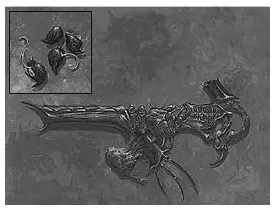 Это оружие больше похоже на рой, чем на отдельный организм. Оружие сцеплено с носителем таким образом, чтобы обеспечить питанием и условиями роста массу личинок Потрошителя с нарушенным развитием; эти личинки являются боеприпасом орудия. Большой конический рог прошит многочисленными дыхательными трубками, которые также становятся путями выхода в минуту опасности. Сигнальные феромоны вызывают личинки в дыхательные трубки, когда носитель испытывает нужду использовать оружие. Биоэлектрический импульс дает выводку сигнал к атаке. Встретив любой объект, он начинает яростную атаку, кусая и протачивая, и одновременно выделяя крайне едкую желчь. Эти твари демонстрируют явное предпочтение к нервным тканям, и крайне быстро продвигаются к спинному и головному мозгу, вызывая мучительную, но милосердно быструю смерть.