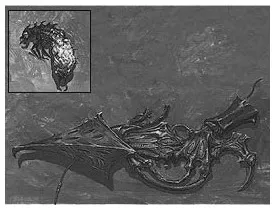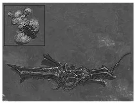 Гипотеза: В своей нынешней форме организм не способен поразить какую-либо цель своими шипами без помощи носителя. Похоже, что его вывели из литорального ракообразного хищника, который использовал сжимаемость газообразной среды для заряда батарей своего оружия. Длинная пуповидная глотка указывает на то, что он оставался твердо сцепленным с морским дном или кораллом, поднимая глотку для забора газов. Жидкости потребовали бы больше энергии для сжатия до приемлемой степени, чем газы. Вскрытия показали наличие рудиментарных жабр и связок в местах крепления шипов. Это могло позволять организму пронзать свою добычу в яростном прибое и подтягивать ее обратно без потери якоря. (Даже при том сжатии, которого мог добиться этот организм с его биологическими ограничениями, газы придали бы ему нежелательную плавучесть, из чего вытекает необходимость прочной хватки и твердого якоря, чтобы избежать подъема на поверхность и уязвимости перед хищниками).