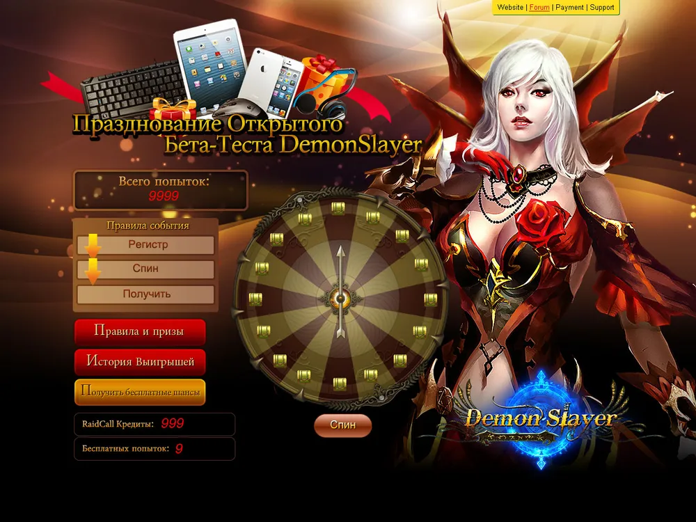 Если всего этого недостаточно, чтобы заинтересовать вас грядущим стартом открытого бета-теста, примите во внимание следующее: "Koramgame" отметит запуск русскоязычной версии игры с небывалым размахом - у игроков будет шанс выиграть множество отличных призов, включая iPhone 5, iPad Mini и огромное количество игровых аксессуаров. Пользователи смогут принять участие в этом удивительном розыгрыше, если решаться вращать Рулетку Demon Slayer. Шанс выиграть необычайно высок - 51%!